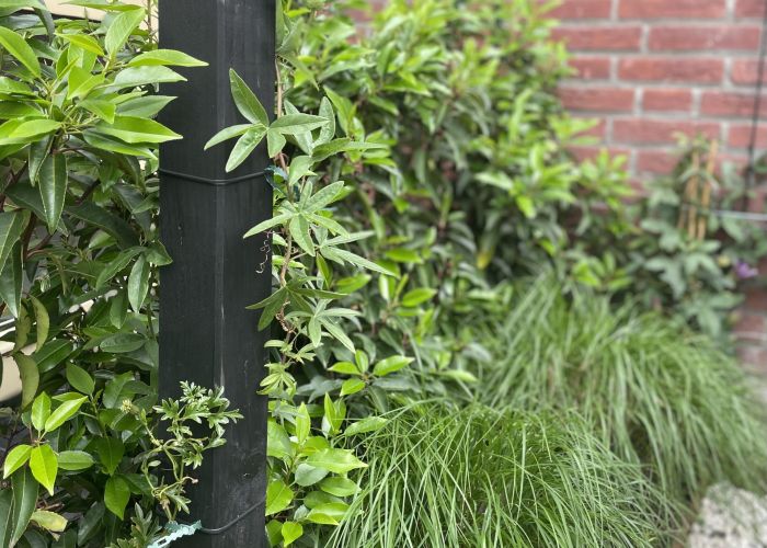 De uitdaging zat in de wens voor meerdere zithoekjes in deze middelgrote tuin, waarbij de bewoners ook meer beplanting wensten. Dankzij een pergola en klimplanten tegen de muren wordt veel verticale groene ruimte gecreëerd. Ook is een prachtige overkapping geplaatst en een mooie nieuwe schutting naar de buren. De beplanting maakt deze tuin helemaal af! Er is kleur in alle seizoenen; met wintergroene beplanting, bloesem in het voorjaar en prachtige verkleuring in de herfst. Er is een aantrekkelijke variatie in bladvormen en -kleuren die perfect bij de omgeving aansluit.
